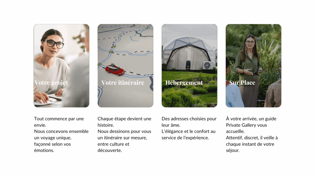 De la première idée à votre retour, chaque détail est pensé pour transformer votre projet en expérience unique.